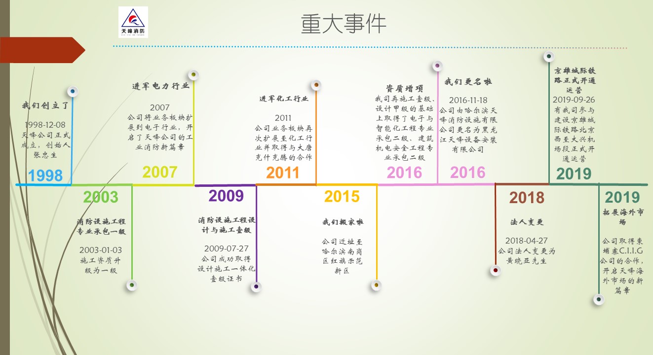 九游(9Game)官方网站-体育竞技领航者 (以下简称:天峰消防)创立于1998年,主要承接能源化工、石化、电力、轨道交通、冶金、城市管廊等工业行业消防系统工程,可为客户提供特殊消防系统的详细设计、供货、施工等集成服务,天峰消防将依靠自身实力和信誉实现“立足龙江,布局全国,走向海外”的目标。